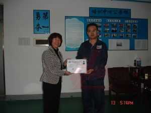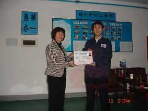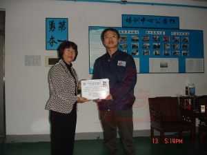 龍神彭小浣經(jīng)理為老師頒發(fā)汽車鈑金與噴漆修復(fù)技術(shù)合格證書