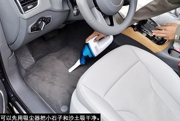 車(chē)輛的地面往往有很多沙土或小石子等臟東西,要把他們清理干凈,最簡(jiǎn)單的方法就是用吸塵器。如果家里條件允許,可以使用家用吸塵器,因?yàn)檫@種吸塵器吸力大、效果明顯,而市場(chǎng)上經(jīng)??吹降能?chē)載吸塵器一般吸力比較小,用起來(lái)比較費(fèi)勁,但如果不具備使用家用吸塵器的條件,也只能用車(chē)載吸塵器將就一下了。