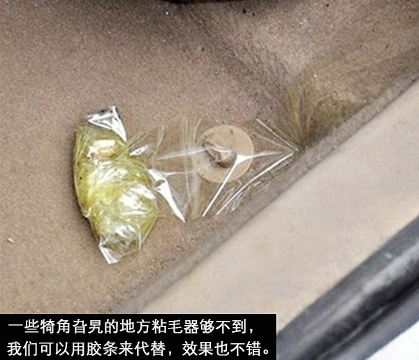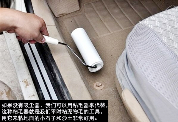 如果沒(méi)有吸塵器怎么辦呢?別急,我們可以用粘毛器或膠條來(lái)代替吸塵器,效果也是比較明顯的。我們可以先用粘毛器來(lái)清潔地面平整的部分,一些角落或座位下等不容易清理的部分可以用膠條來(lái)清理。
