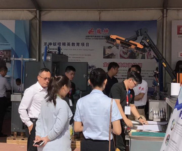 龍神公司一如既往助力"2018年全國職業(yè)院校中職汽修技能大賽";大賽使用龍神產(chǎn)品:調(diào)色燈箱、噴漆柜、油漆烘烤箱、除油劑噴壺(比利時)、 噴涂架、切紙架、壓縮空氣系統(tǒng)等,為大賽保駕護航。