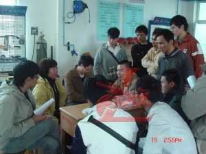 (左二)龍神彭小浣經(jīng)理與龍神班學生交流在企業(yè)實習經(jīng)驗