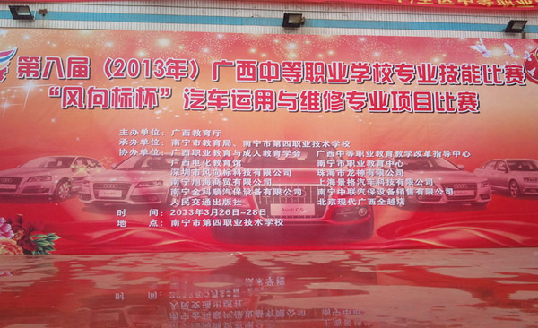 2013年3月28日,珠海龍神有限公司協(xié)辦的第八屆(2013年)全區(qū)中等職業(yè)學(xué)校專業(yè)技能比賽,“風(fēng)向標”杯汽車運用與維修專業(yè)項目比賽廣西賽區(qū)在南寧市第四職業(yè)技術(shù)學(xué)校鳴鑼收兵,84人(42組)載譽而歸。