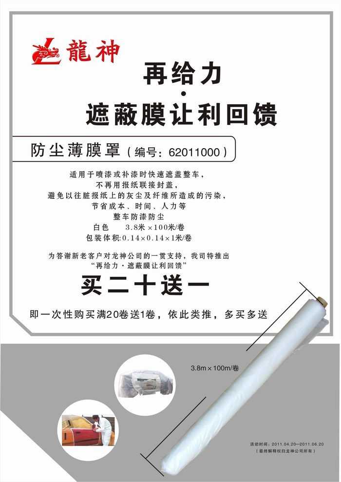 防塵薄膜罩 尺寸3.8米*100米/卷 龍神編號(hào):62011000