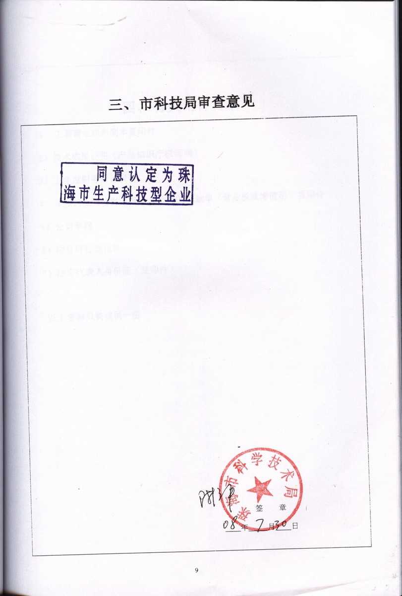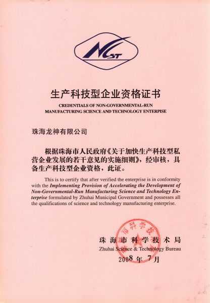 資格證書 一、ISO9001:2008質(zhì)量管理體系認(rèn)證ISO9001:2008質(zhì)量管理體系認(rèn)證證書 二、廣東省民營科技企業(yè)資格證書民營科技企業(yè)資格證書 廣東省民營科技企業(yè) 三、珠海市生產(chǎn)科技企業(yè)證書生產(chǎn)科技型企業(yè) 珠海市生產(chǎn)科技型企業(yè) 認(rèn)定證書 生產(chǎn)科技型企業(yè)資格證書(以上圖片均可點擊放大) 2012-11-27 37337