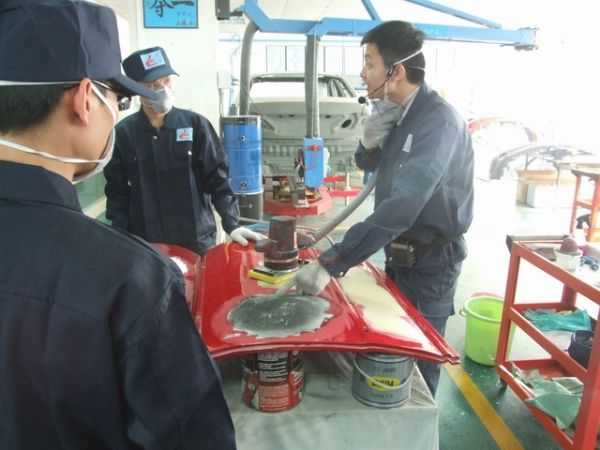 鈑金組朱老師指導(dǎo)正確使用鈑金整形架和工具修復(fù)車身